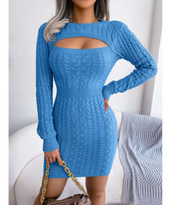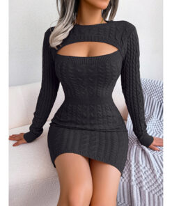 Stay stylish and confident in this sexy cut-out sweater dress! Designed with fashionable cut-out details and a body-hugging fit, this long sleeve mini dress is perfect for fall evenings out. Made from soft, stretchy knit fabric that comfortably contours your curves. The pullover design and cozy material make it ideal for cool weather occasions from dates to parties.