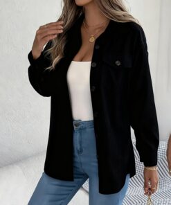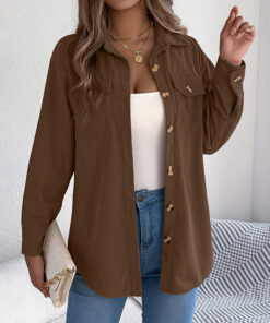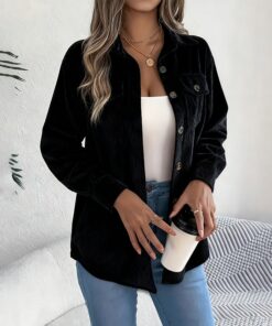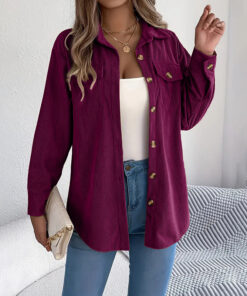 Women’s Corduroy Shirt Jacket – Long Sleeve Button-Down Coat for Office & Casual Wear