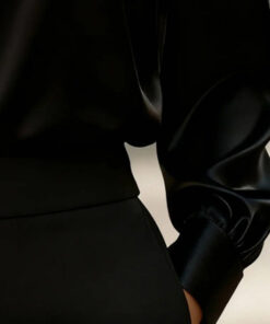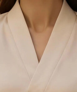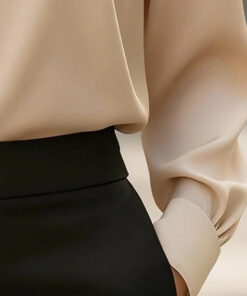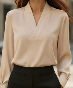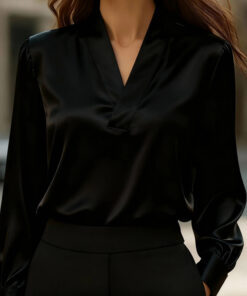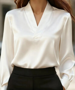 Women’s Elegant V-Neck Blouse – Long Sleeve Shiny Office & Casual Shirt